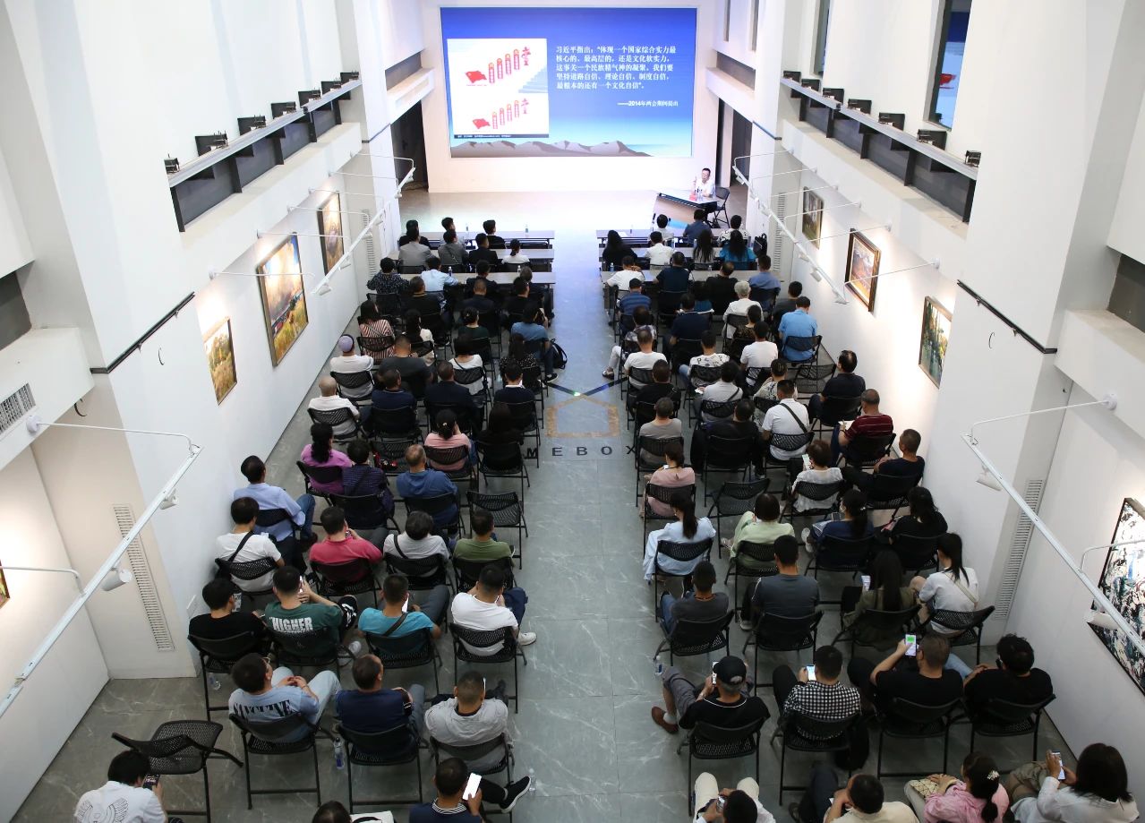 王登渤以《坚定文化自信,建设文化强国》为题,从何谓文化自信、文化自信是价值观的自信、文明的认同、历史文化的认同、传统文化的认同等五个方面对文化自信的科学内涵做了学理上的解读;从马克思主义理论是文化自信的理论依据、中华优秀传统文化是文化自信的历史依据、经济实力是文化自信的现实依据、文化自觉是文化自信的心理依据回答了文化自信的来源;结合当前文艺创研现状,指出广大文艺工作者要深刻认识到中华优秀传统文化是中华民族的精神命脉,是涵养社会主义核心价值观的重要源泉,是中国文艺的“根”和“魂”,要善于从中华文化宝库中萃取精华、汲取能量,努力以高尚的操守和文质兼美的作品,讲好中国故事、表达中国价值、传承中华文化,从而在文化的道路上更加自信,在文化强国建设上更有底气,在推进中国式现代化甘肃实践中更有新作为。