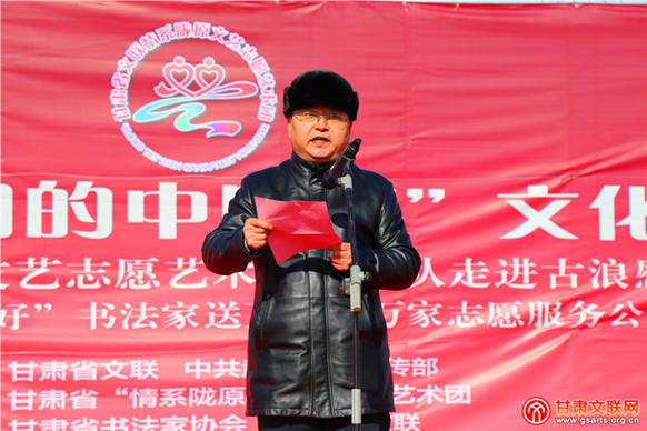本次活动由甘肃省文联、中共武威市委宣传部主办,甘肃省“情系陇原”文艺志愿艺术团、甘肃省书法家协会、武威市文联、中共古浪县委宣传部承办。