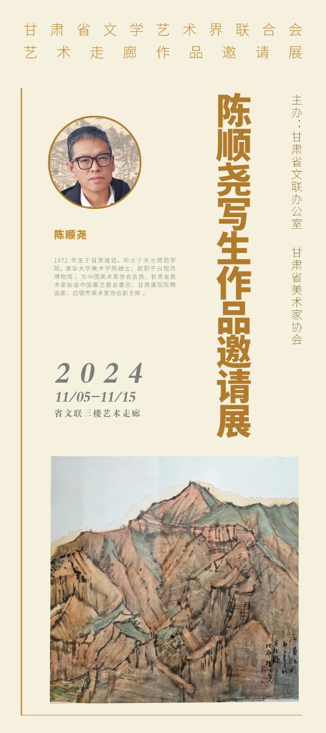 陈顺尧,1972年生于甘肃靖远,就职于白银市博物馆。毕业于天水师范学院,清华大学美术学院硕士。为中国美术家协会会员、甘肃省美术家协会中国画艺委会委员、甘肃画院院聘画家、白银市美术家协会副主席。
