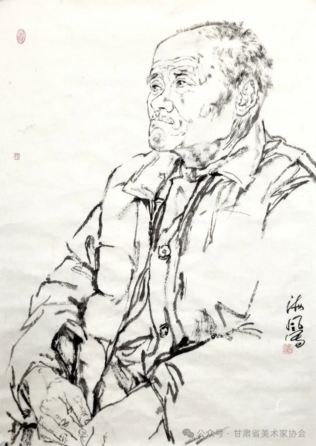 《老人像写生》中国画 45×65cm 2023年