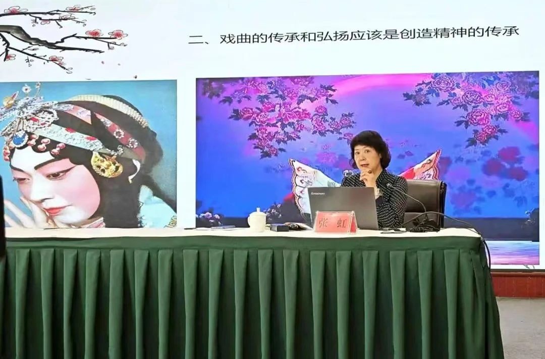 张虹作了《弘扬中华美学精神——新时代戏剧创作探析》的宣讲。她以当代创作的经典剧目为例,阐释了戏剧的传承应该是创造精神的传承,从高度综合性、写意与抒情性、假定性和虚拟性、程式与形式美讲解了中国戏曲的主要特征,强调守住传统就必须守住程式、戏曲的传承与创新必须要与时俱进。张虹在与艺术家的交流互动中谈到,我省广大文艺工作者要以习近平文化思想为指导,深刻领悟中华美学精神的丰富内涵和时代特征,进行创造性转化创新性发展,传承中华优秀传统文化,弘扬中华美学精神,用实际行动推动中国传统艺术的繁荣发展。